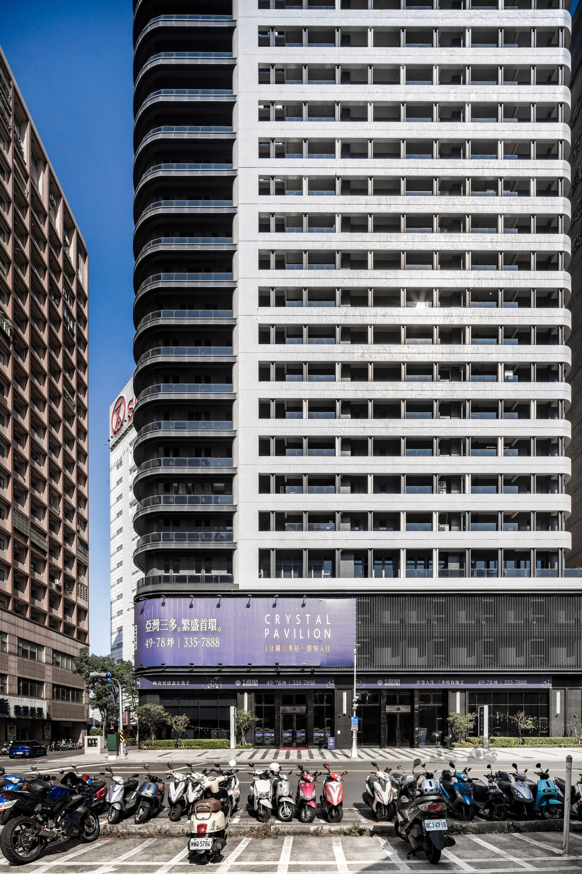 位於市中心之酒店式管理住宅。緊臨百貨商業區,高度達 100M,在建築整體造型的形塑上,放棄傳統立面的設計方式,改以皮層包覆的方式進行設計,以期能達到提昇建築的整體性以及流暢度。再者,為避免夜間照明與建築外觀各自為政,將照明設計融入建築語彙之中,使其夜間效果與白天的外觀能夠相互結合。公共設施設置於4層與頂層,除了將室內型於室外型公共設施進行區分外,並透過與屋頂室外空間的結合,融入景觀設計原素,營造半室內室外空間。進而提昇空間品質。