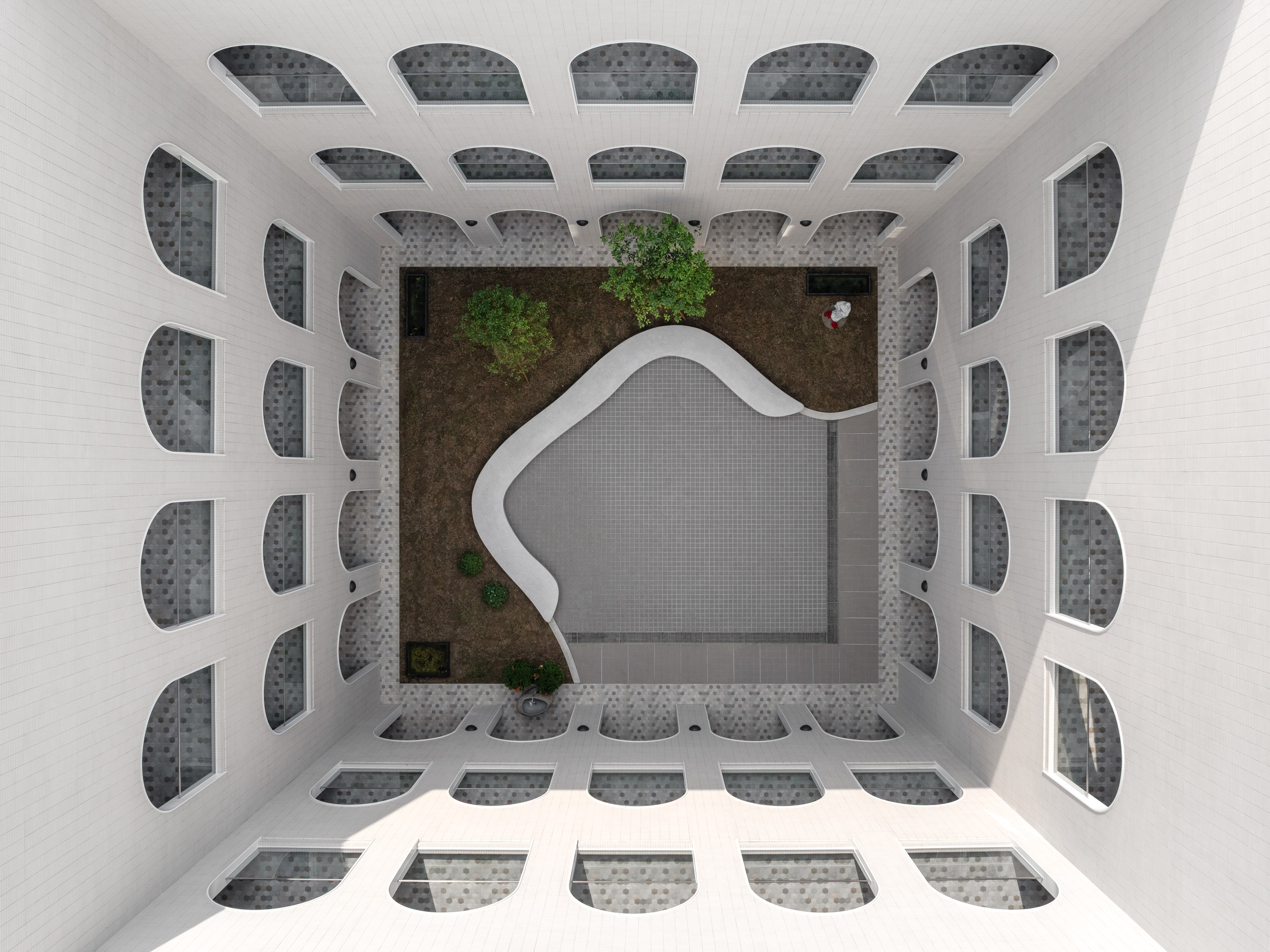 外部材質選用質樸而耐久的瓷磚與石材,搭配細膩的立面比例,呼應修道生活的謙遜與永恆感。內部則以柔和色調與天然光源塑造溫暖居住體驗,並在動線規劃中兼顧隱私與社交空間,使年長修女與訪客皆能在此獲得歸屬感與寧靜。整體設計在功能、精神與美感之間取得平衡,成為校園中一處富含文化記憶與現代氣息的地標建築。