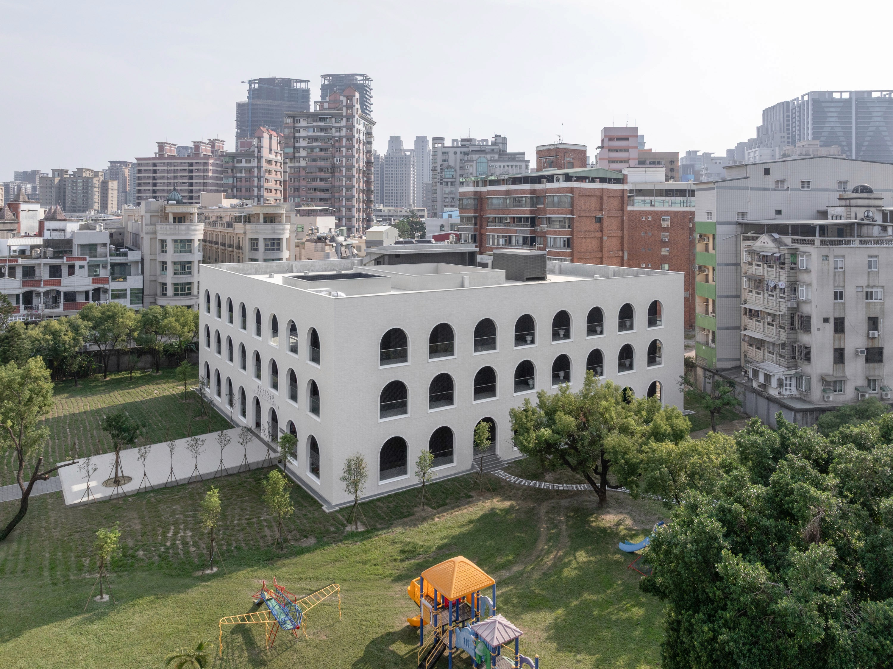 聖母升天初學院是高雄道明國際學校校園內的新建修道院與宿舍空間,承襲傳統歐洲修道院的迴廊與拱形語彙,並以簡潔的當代手法詮釋,營造出安靜、沉穩且具有精神性的氛圍。建築核心以中庭為視覺與動線的中心,讓光影隨時間流轉,形成日常中微妙的節奏。