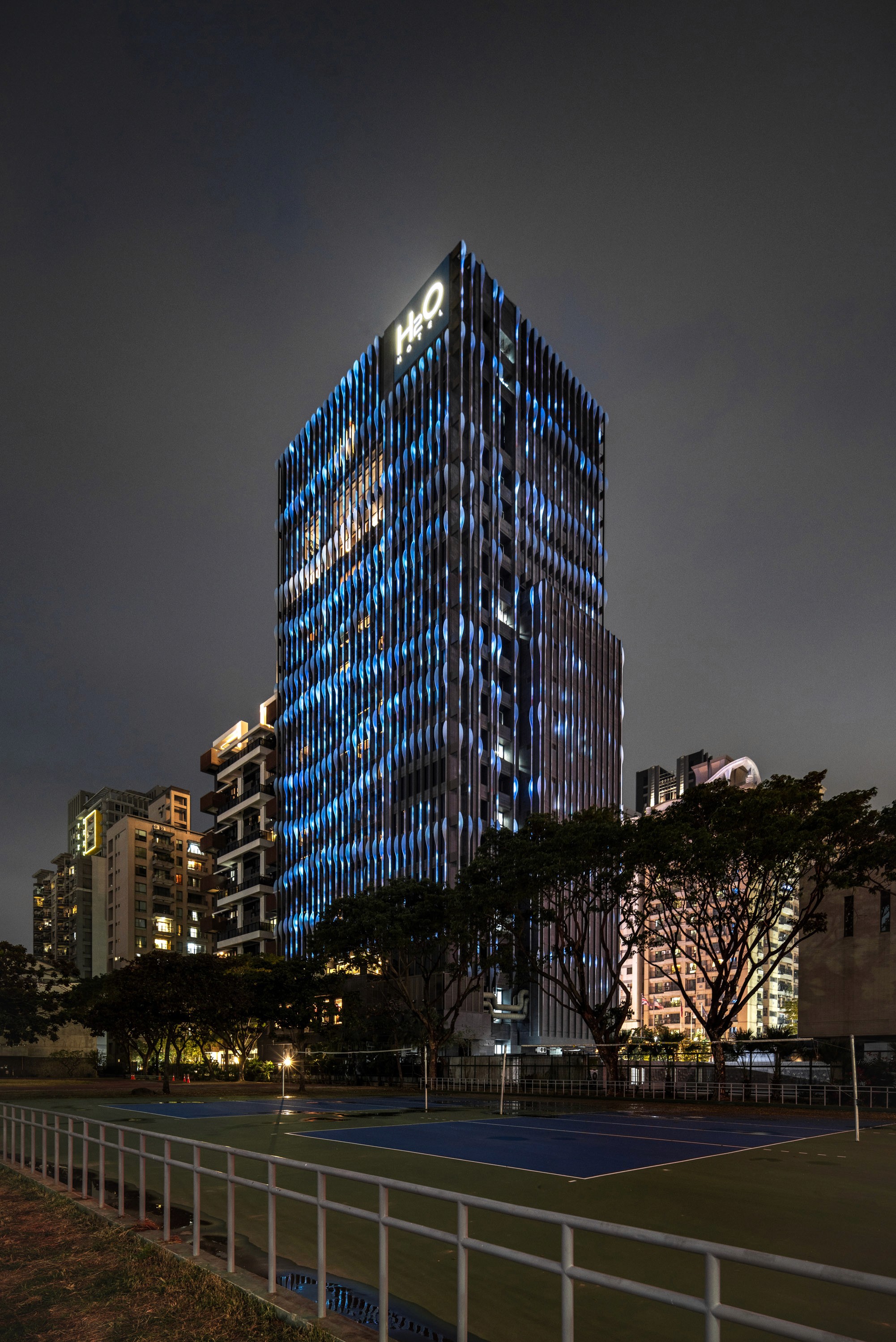 位於高雄市北方的新興發展地區,地點十分便利。與其他飯店較為不同的是,飯店大廳是設置在頂層,與早餐廳、夜間的俱樂部空間結合。一層與二層的空間,設置獨立的餐廳空間。餐廳的前方為建築物退縮後的開放空間。