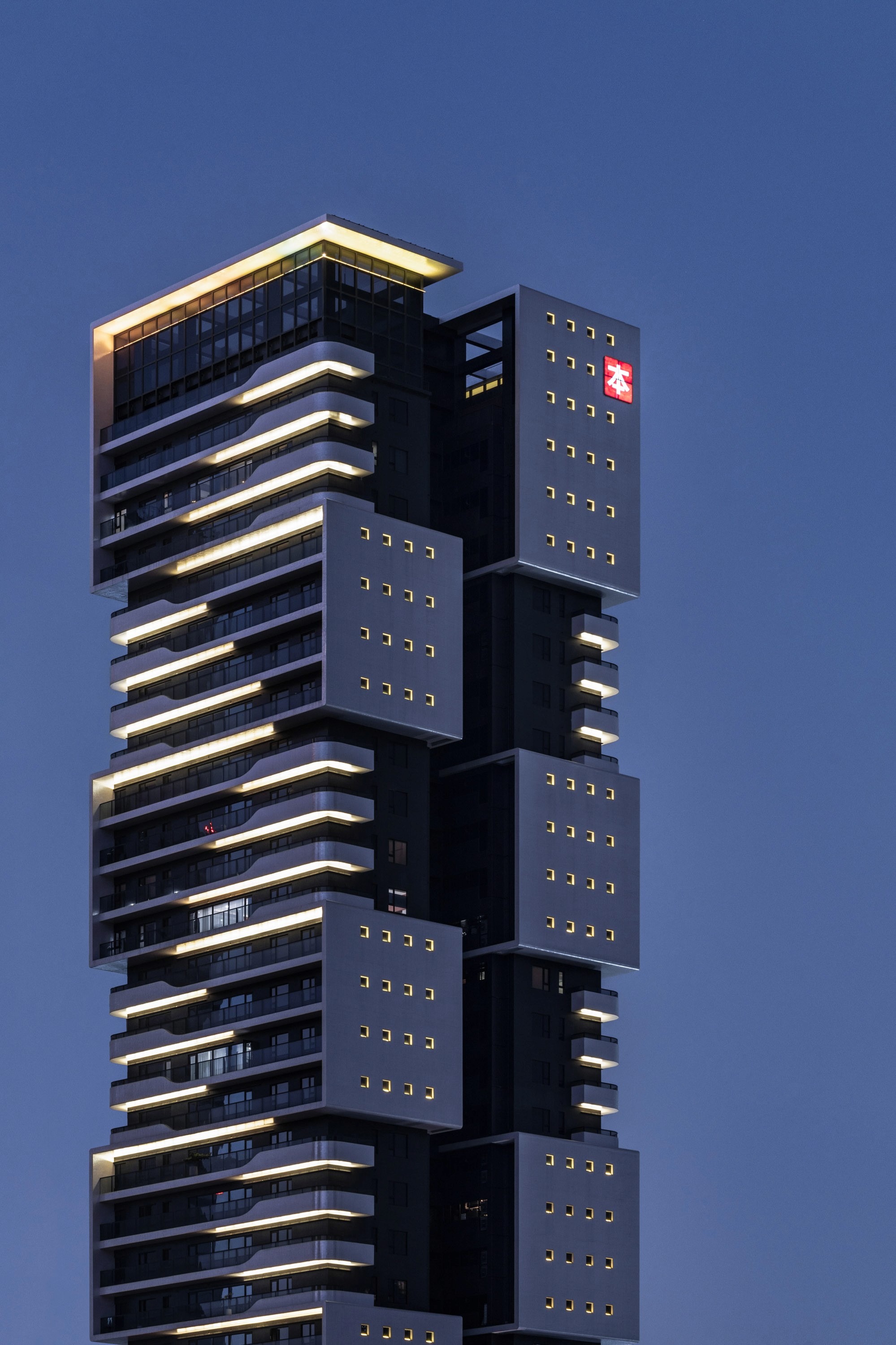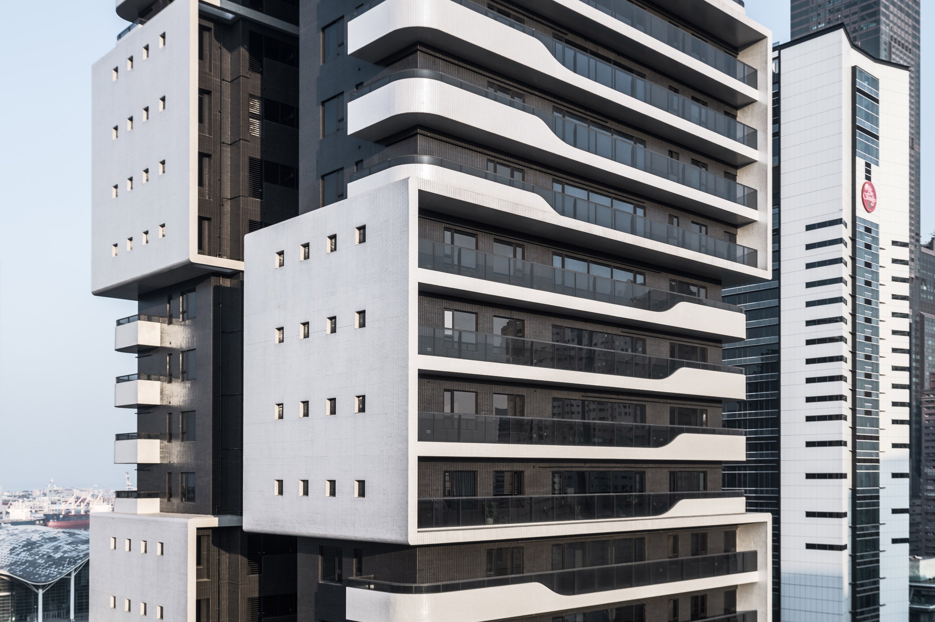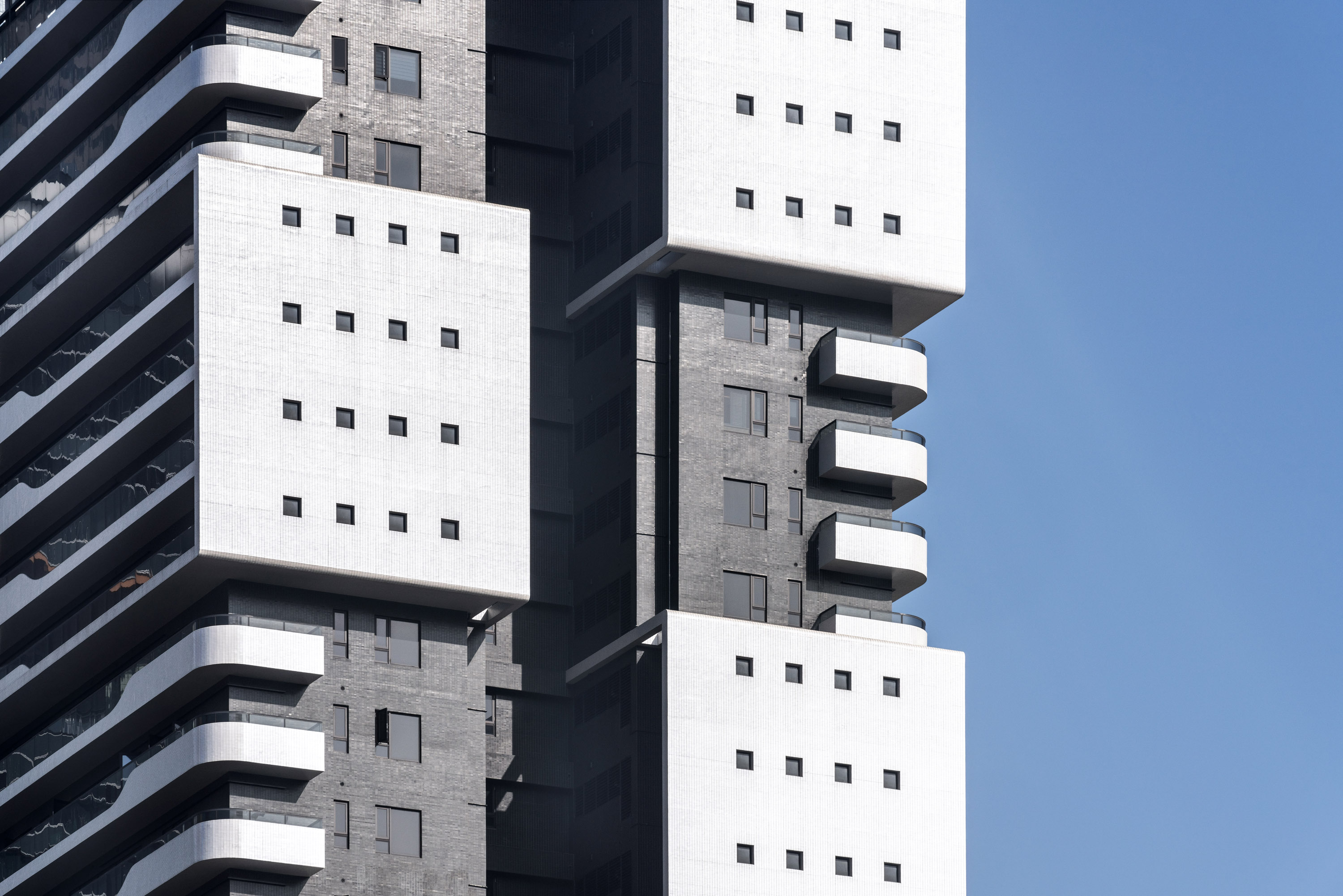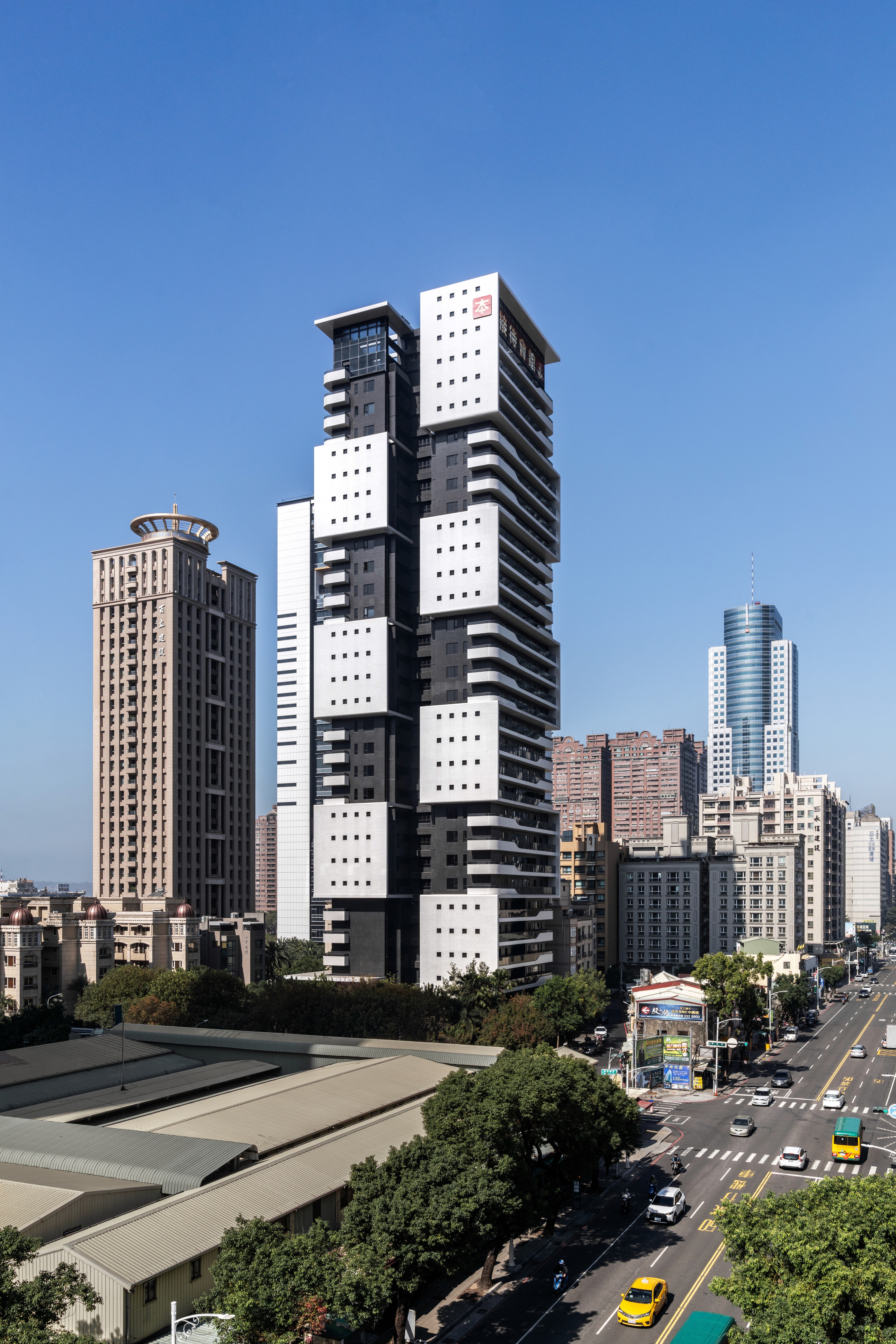 位於高雄亞洲新灣區計畫内,因此有別於一般住宅大樓由平面出發的設計方式,改以量體與平面同步的操作方式來嘗試新的設計方式。希望借此能創造出有趣的集合住宅樣貌 ,且也成為當地的地標之一 。在基地內開放空間設置大範圍的圓形鏡面水景,在機能上借此做為隱形圍牆 ,在心理上成與隔絕外部塵囂的過渡空間。